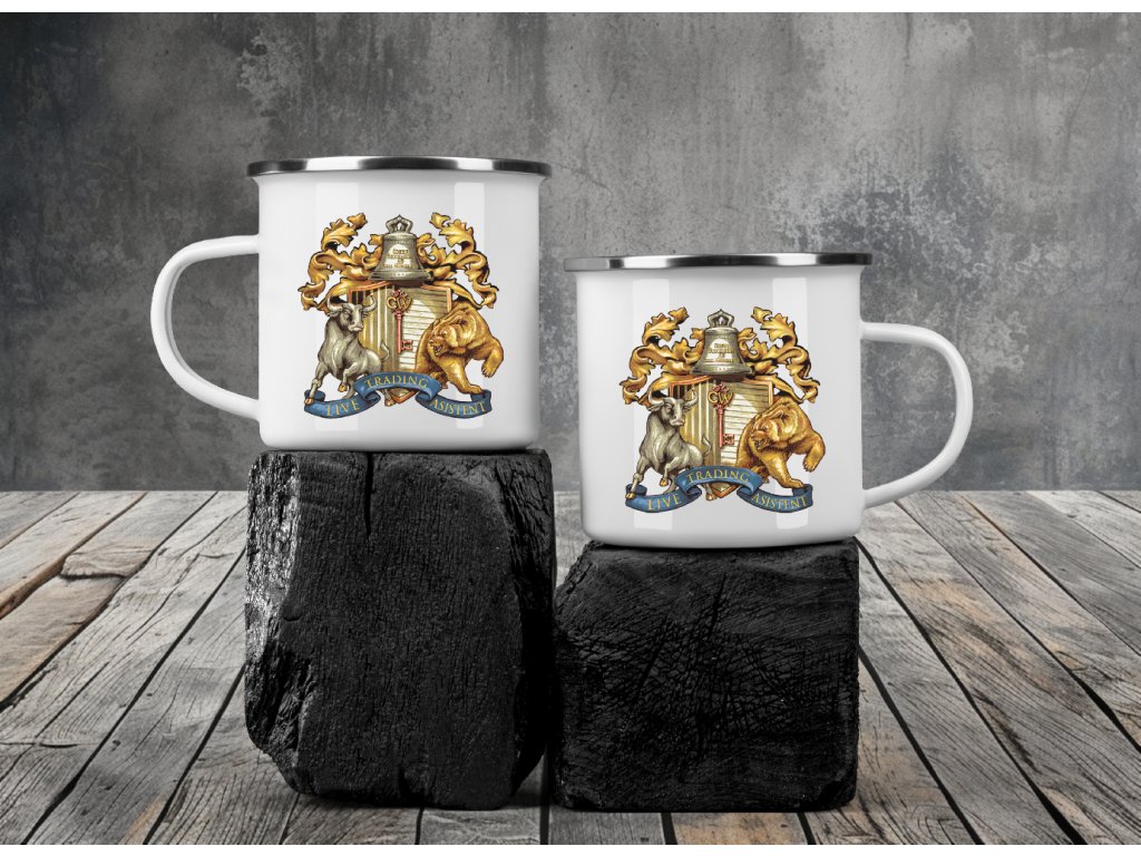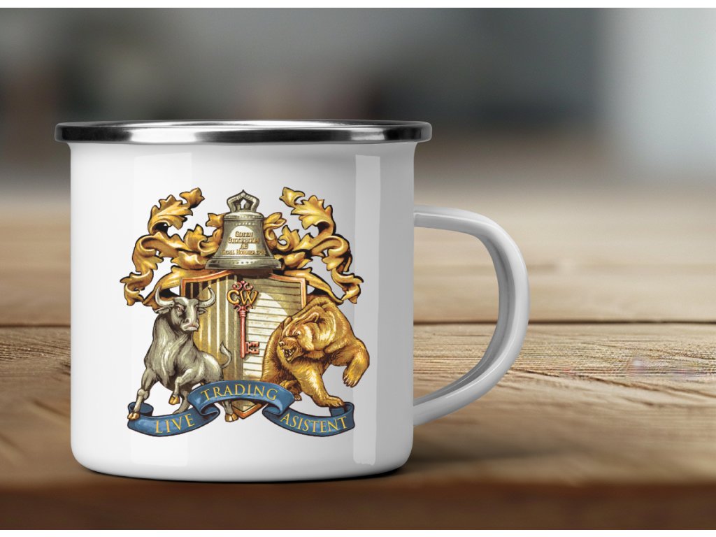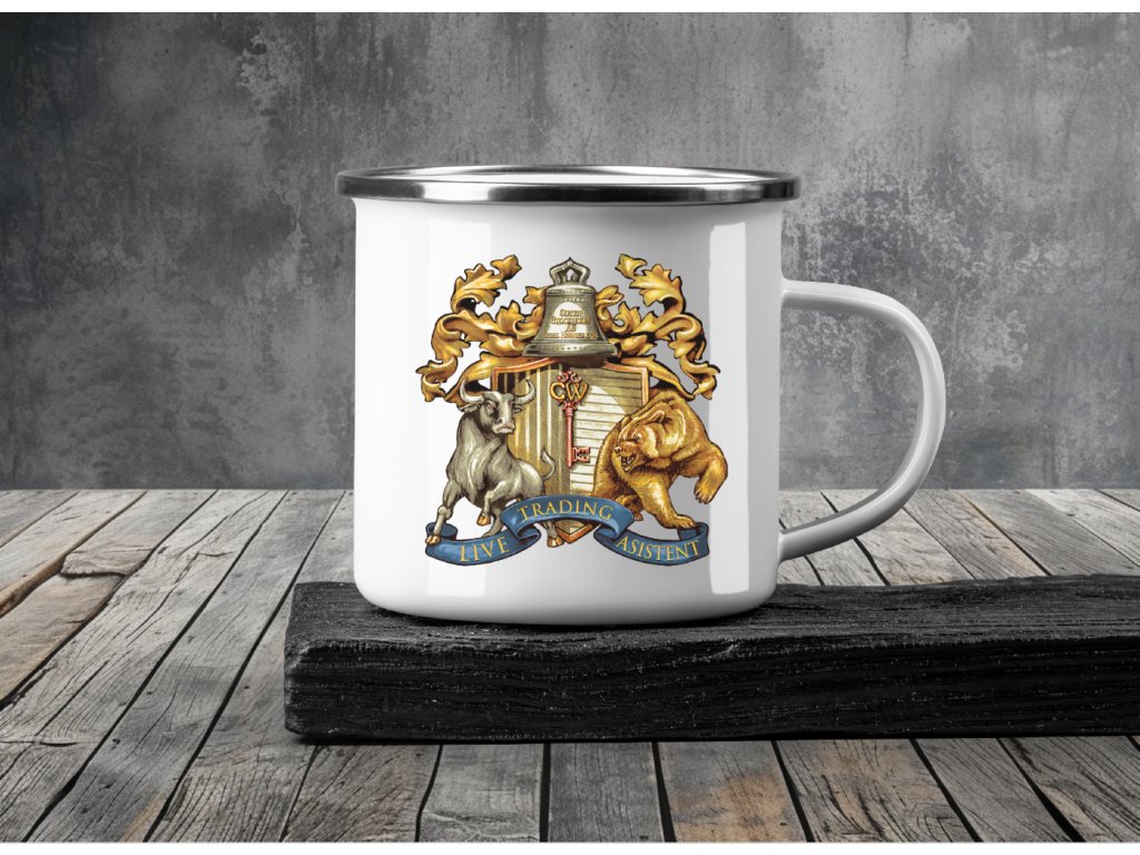 Stylový smaltovaný plecháček Live Trading Asistent 🐂🐻 Symbol trhů, disciplíny a síly – ideální společník každého tradera. CzechWealth Merch