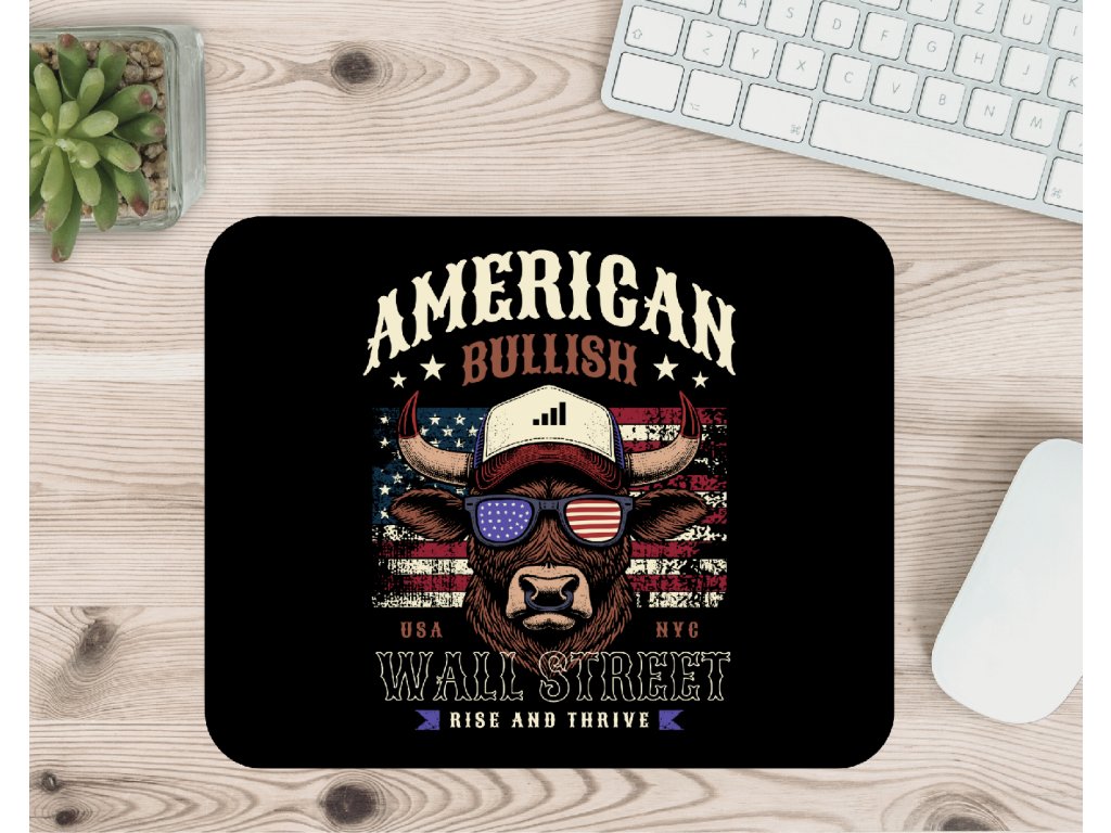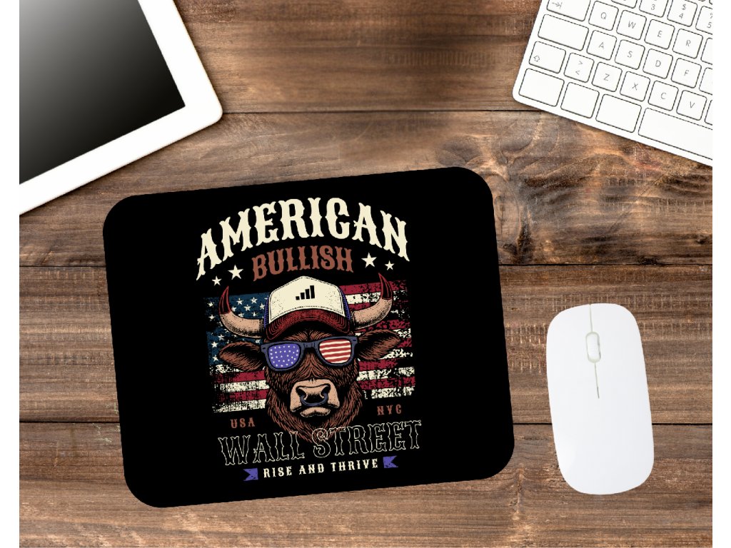 Stylová tradingová podložka pod myš s motivem American Bullish – Wall Street 🐂 Přesnost, komfort a motivace při každém pohybu myši.