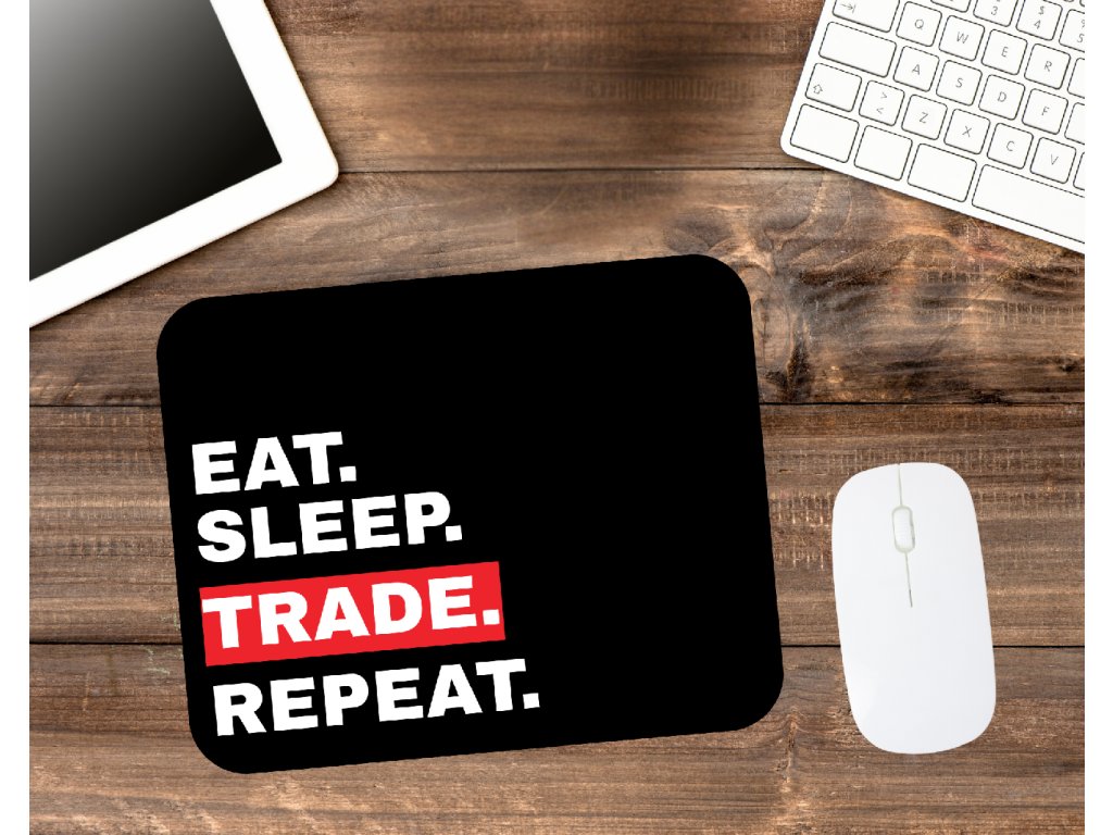 Stylová tradingová podložka pod myš s mottem EAT. SLEEP. TRADE. REPEAT. 💹 Hladký povrch, protiskluzová spodní vrstva a motivace na každý klik.