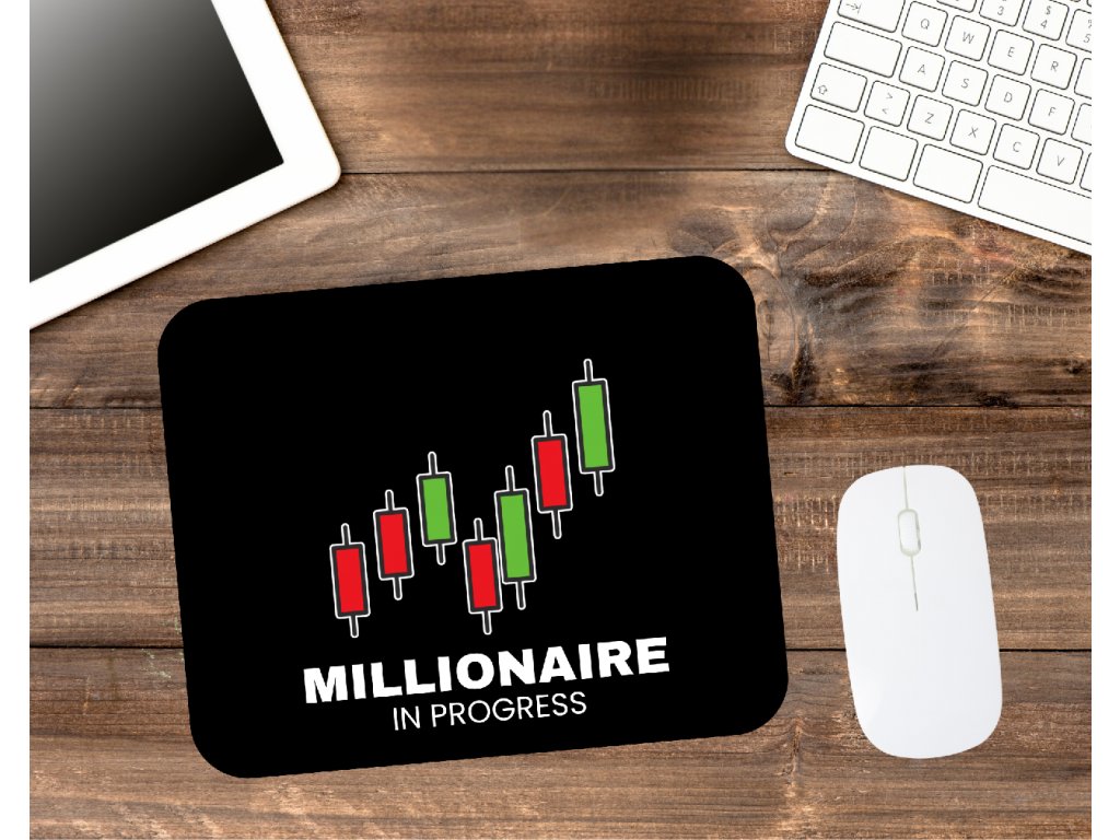 Stylová tradingová podložka pod myš s motivem Millionaire in Progress 💹 Hladký povrch, protiskluzová vrstva a motivace při každém kliknutí.
