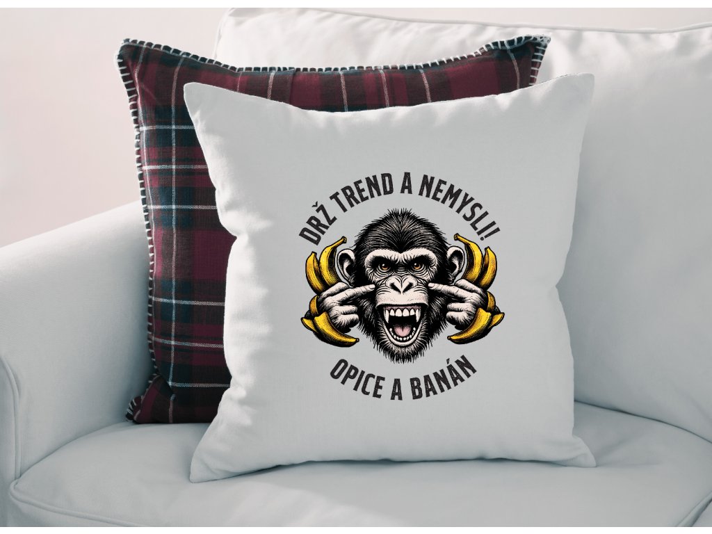 Polštářek Drž trend a nemysli – když opice ví víc než ego 🐒📊🍌