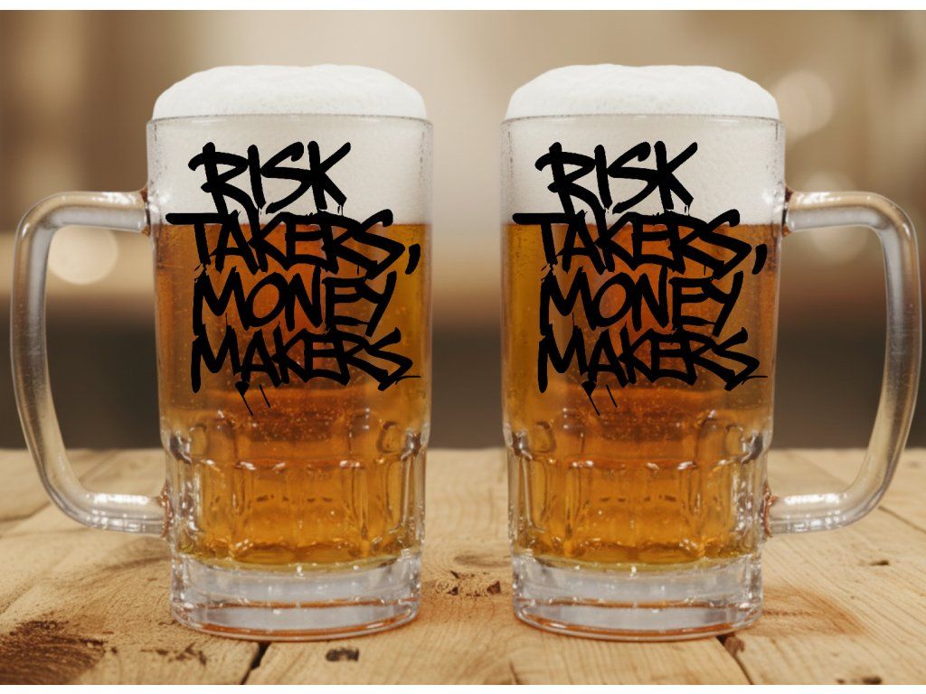 Risk Takers, Money Makers 🍺📊 Půllitr pro ty, co se nebojí risku – a berou zisky.