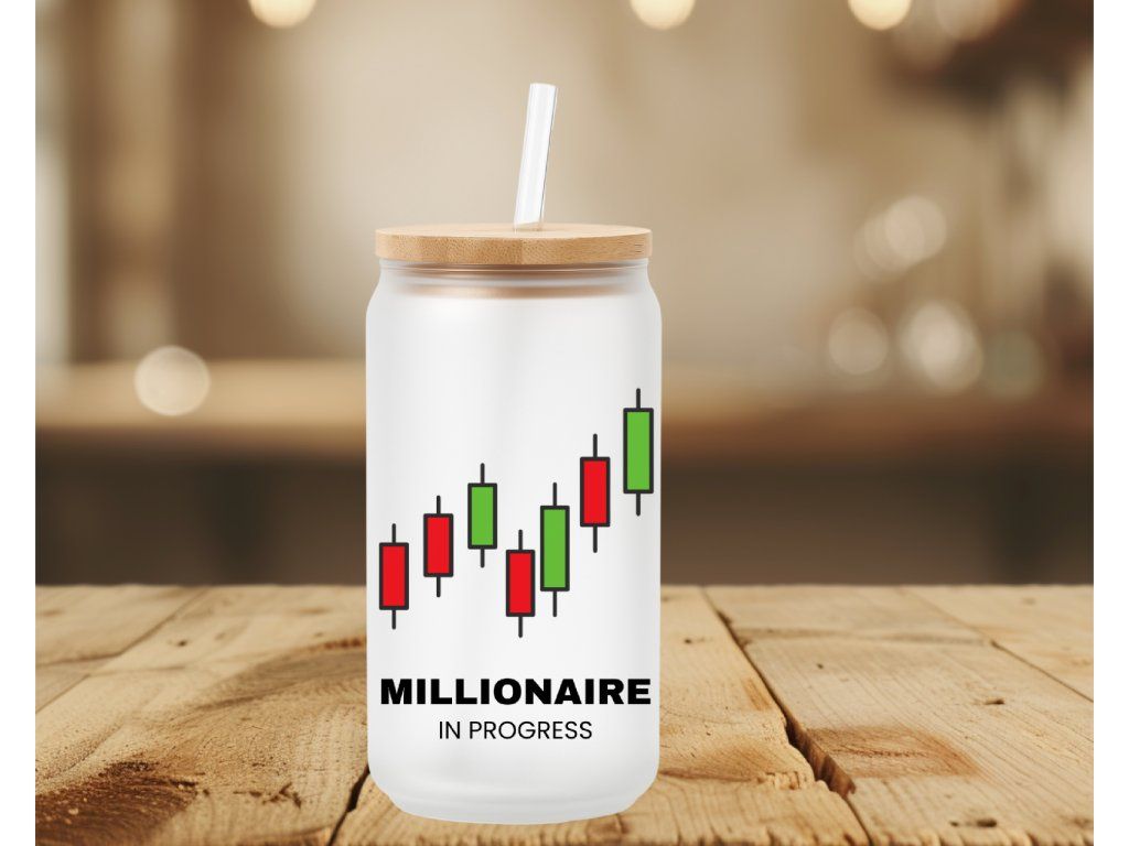 Trading sklenice Millionaire in Progress – mindset růstu v každém doušku 📈