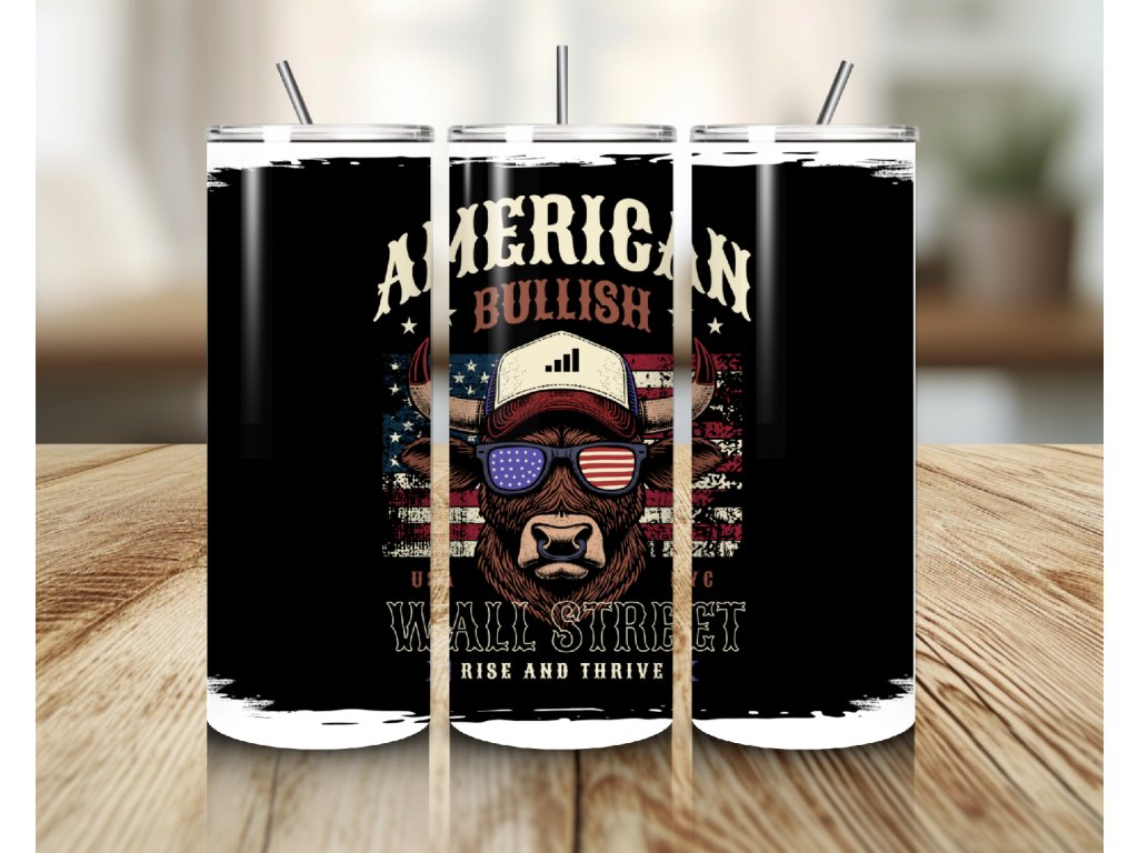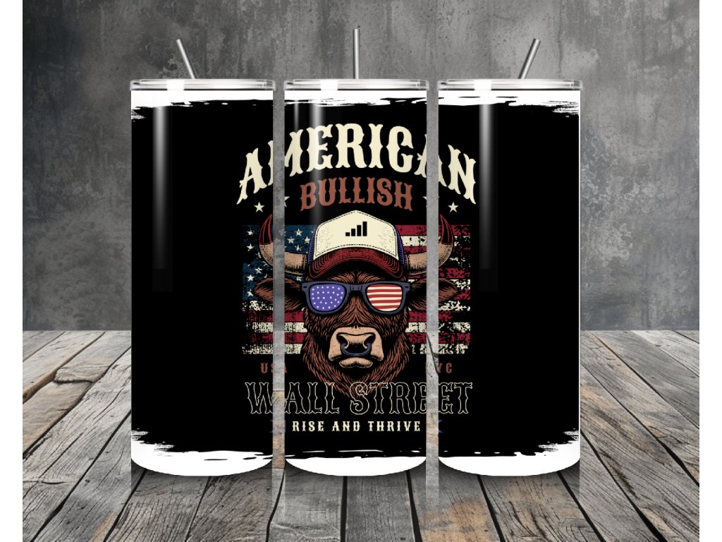 Stylový termo kelímek s motivem American Bullish – Wall Street 🐂 Energie, odvaha a styl – přesně jako trhy, které nikdy nespí.