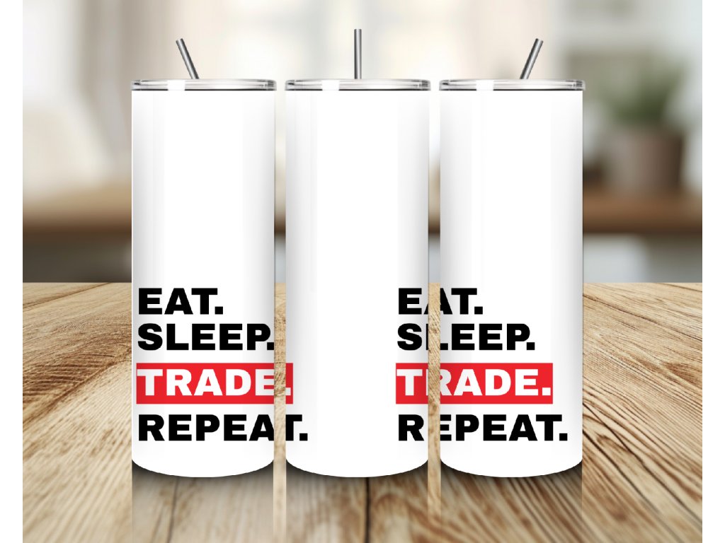 Ráno káva, večer analýza – rutina každého tradera ☕ S tímto tradingovým termo kelímkem s legendárním mottem EAT. SLEEP. TRADE. REPEAT. budeš mít energii po celý den.